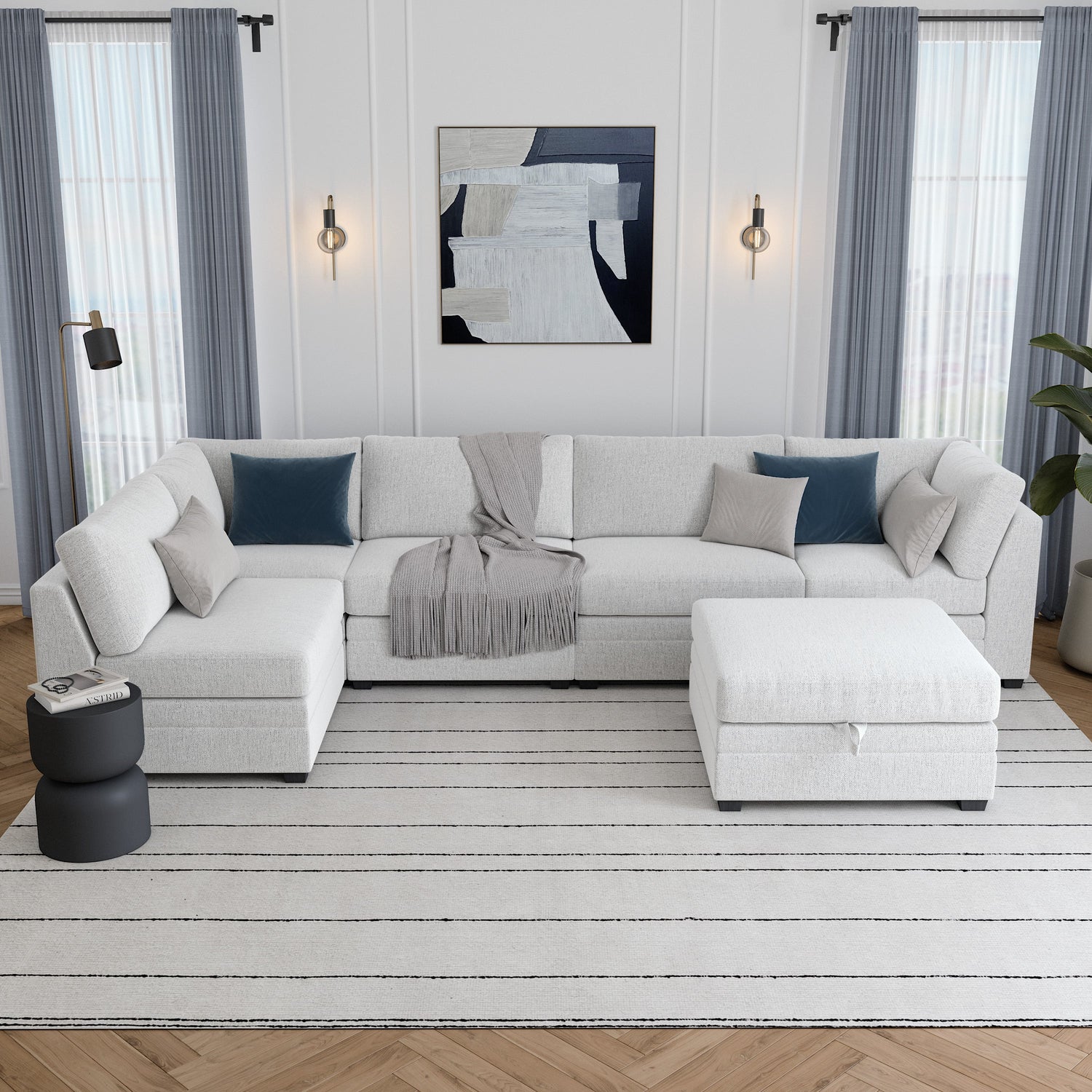 Ember 6-Piece Modular Fabric Sectional with Storage Ottoman